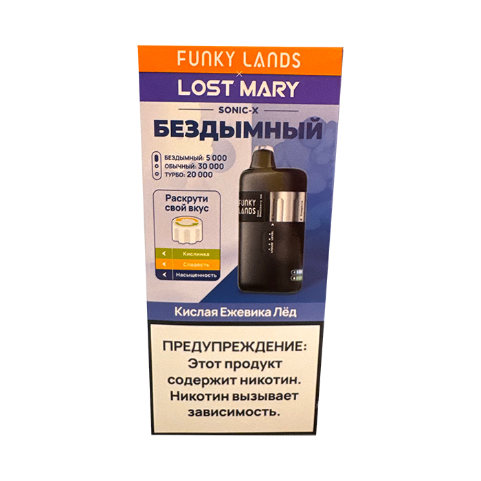 FANKY LANDS LOST MARY SONIC X КИСЛАЯ ЕЖЕВИКА ЛЕД — одноразовая электронная сигарета, вейп, цена